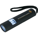 At just the right size, this spray rubber mini flashlight is slim and bright with 3 modes. The first mode a 4 LED flashlight, the second mode a 6 LED flashlight and the third mode is both on at once. Magnetic back for easy storage or for hands free use when attached to metal surfaces. Nylon carrying strap. Push button on/off. 29 lumen. 2 AAA batteries included.