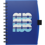 The 5.5" x 7" Coordinator Notebook is a spiral notebook that includes 100 ruled pages and an elastic pen loop. A pen is not included.