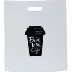 Open main compartment. Die-cut handle. Heat-sealed construction with slim design. Perfect for tradeshows and conventions.