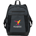 The Expandable 15" Computer Backpack has a large zippered main compartment and features a dedicated laptop sleeve which holds up to a 15 inch computer. The double buckle closures provides added security while two side mesh pockets are ideal for a water bottle or two. An additional front slash pocket includes an earbud port. The padded, adjustable shoulder straps and top grab handle provide make carrying convenient.