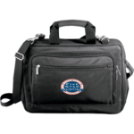 Deluxe front organizer for multiple business accessories. Padded laptop compartment holds most computers up to 15". Detachable, adjustable shoulder strap.