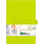 Elevate your brand with this full color, custom bound journal. Features a built in elastic closure, ribbon page marker, document pocket on back cover and 96 sheets of white paper. Customizable full color graphic wrap and oversize blind deboss decoration included in pricing.